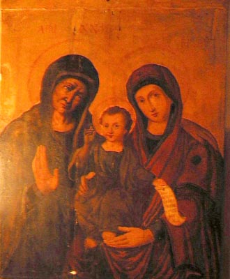 La testa in mano sta a significare il martirio subito per ordine del tiranno Massimiliano nel secolo 312 DC. |