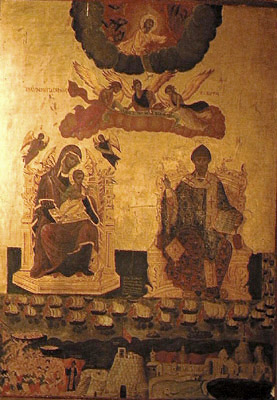 La Madonna, San Spiridione e l'eterno Padre con gli angeli intorno. |